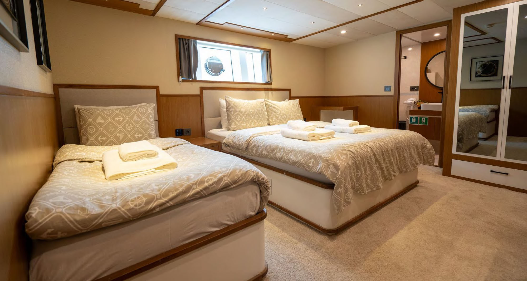 | Guest Cabins | 5 (2 Masters, 2 VIP, 1 Triple) |